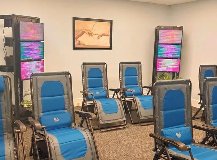 You'll relax in one of our 6 comfortable zero-gravity chairs surrounded by 12 light panels. The room is dimly lit and peaceful. Many clients nap during sessions, which is ideal for healing. You'll simply rest and let the technology do the work. 😊